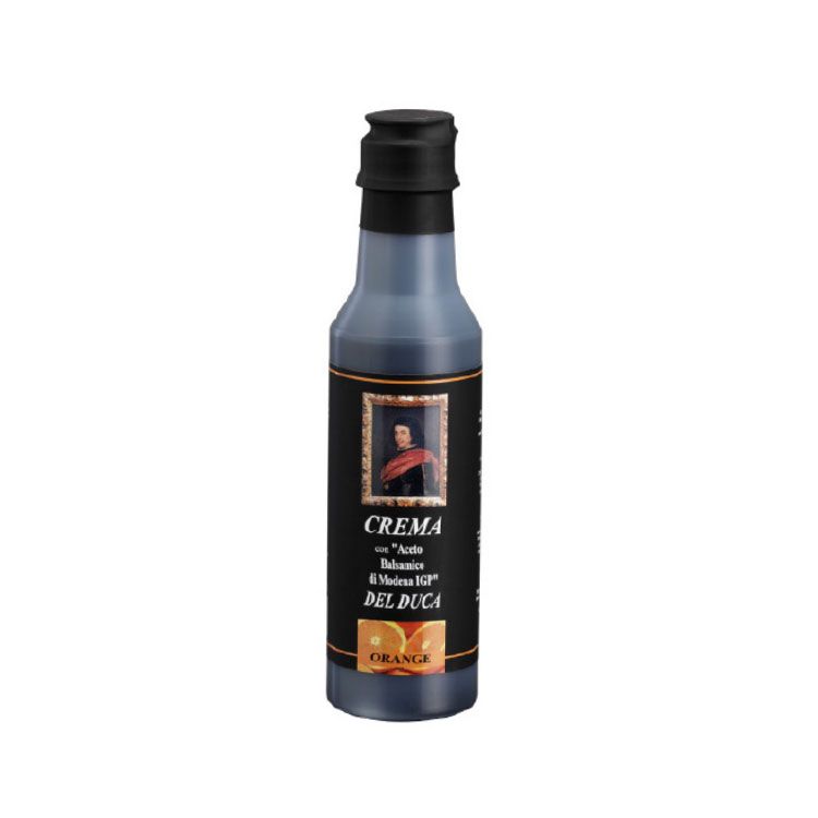 Giấm kem vị cam là một trong những sản phẩm đặc trưng của Aceto Balsamico Del Duca, sản phẩm thủ công nổi tiếng này từ Modena ở vùng Emilia-Romagna của Ý được làm bằng cam, nước cam sẽ được đun nhỏ lửa, sau đó lên men và ủ trong thùng. Sẽ rất tuyệt vời nếu dùng trong các món thịt gà nướng và cá ngừ nướng, rưới lên cà chua tươi thái lát, thêm ít dâu tây ... và sau đó chờ đợi một sự bùng nổ hương vị tuyệt vời.