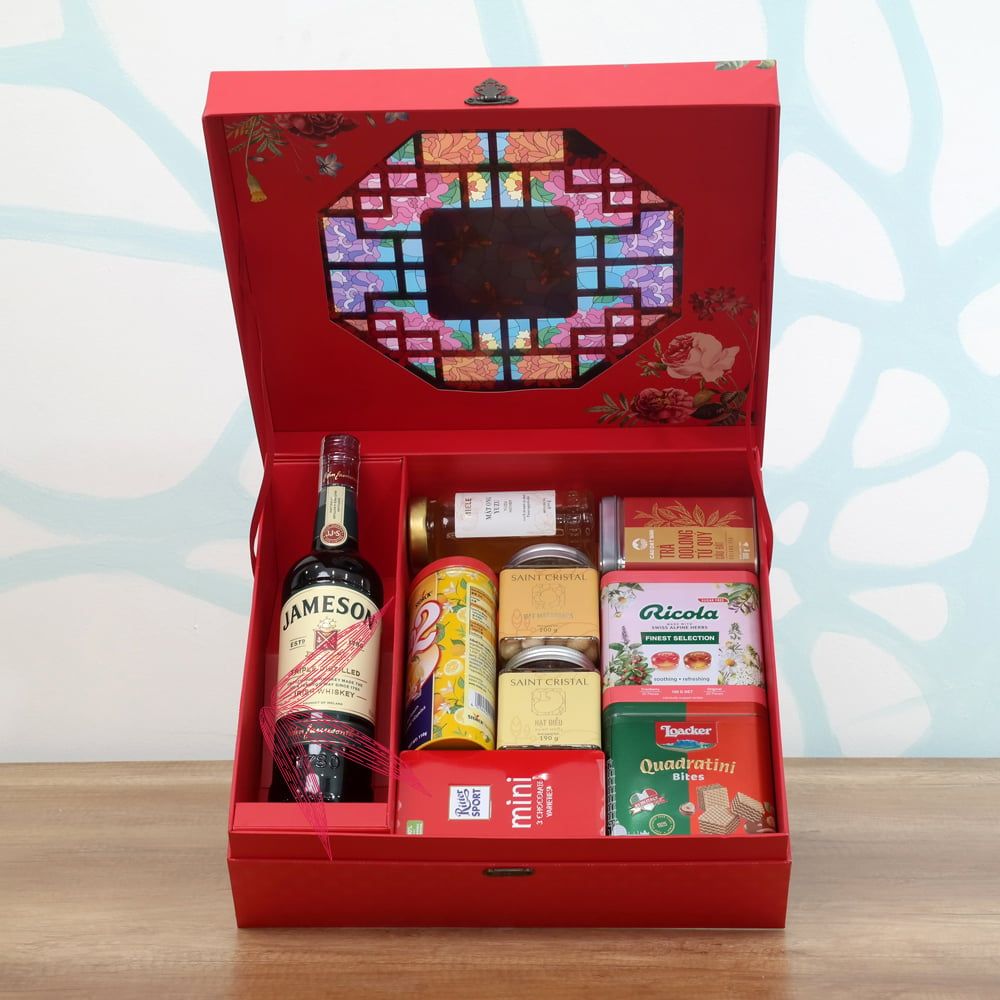 Bên trong hộp quà là sự lựa chọn kỹ lưỡng các sản phẩm đặc trưng cho ngày Tết, bao gồm bánh mứt, trà, , trái cây khô và các món quà đặc sản vùng miền. Mỗi món quà không chỉ mang hương vị Tết truyền thống mà còn thể hiện sự tôn trọng và quý trọng dành cho người nhận. Hộp quà cũng có thể được tùy chỉnh theo sở thích của người nhận, từ đó tạo nên sự bất ngờ thú vị.